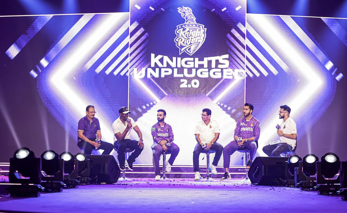केकेआर फ्रेंचाइजी आईपीएल 2025 के टूर्नामेंट से पहले नाइट्स अनप्लग्ड 2.0 इवेंट आयोजित करती हुई नजर आई