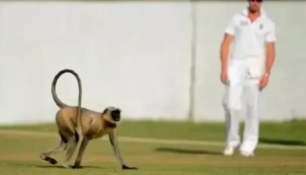क्रिकेट मैदान पर एक नियमित अभ्यास सत्र में एक बंदर ने बाधा डाली