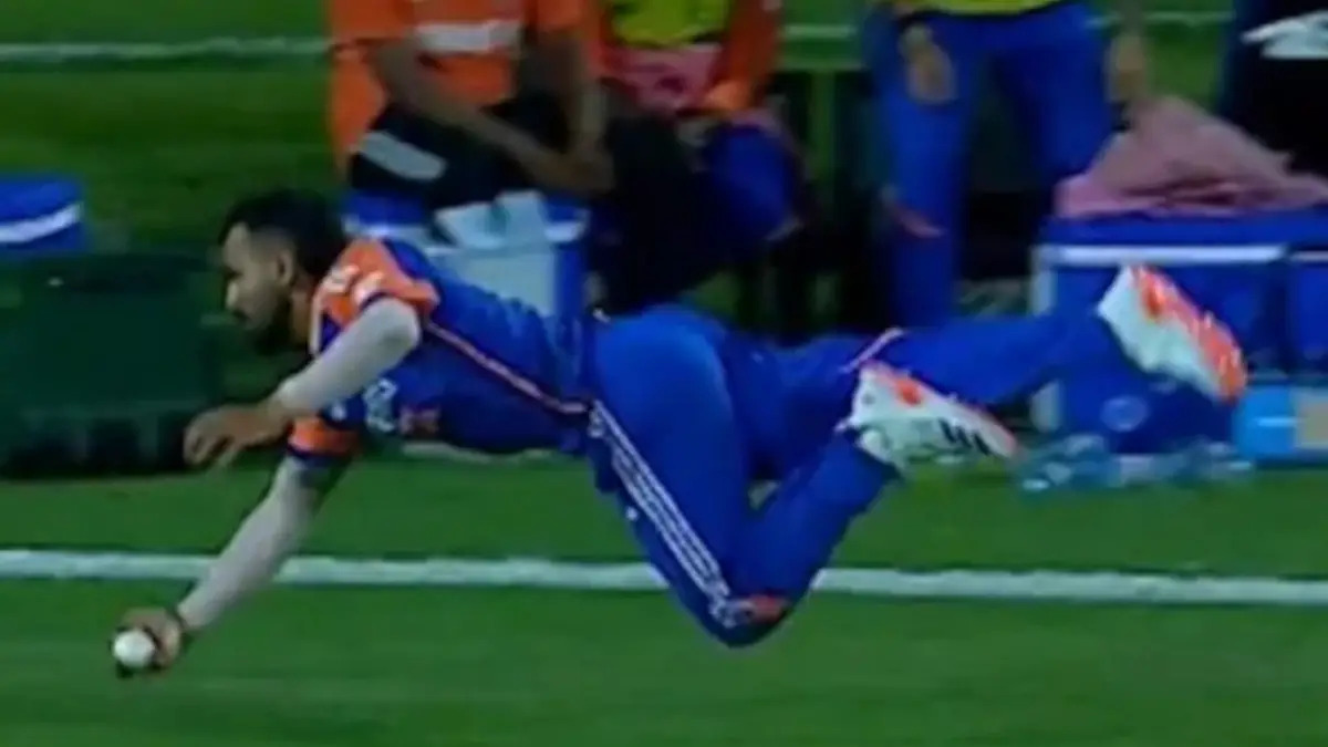 ONE OF THE GREATEST EVER CATCHES FROM RAMANDEEP SINGH. 🥶 pic.twitter.com/5gM0L02eDv