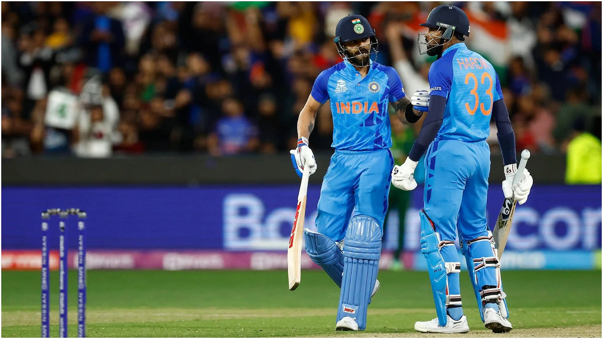 भारत के कप्तान रोहित शर्मा और सूर्यकुमार यादव ने मेलबर्न क्रिकेट ग्राउंड (MCG) पर पाकिस्तान के खिलाफ आईसीसी टी20 वर्ल्ड कप 2022 की यादगार जीत पर बड़ी प्रतिक्रिया दी है। बता दें कि दोनों टीमों के बीच यह यादगार मैच 23 अक्टूबर, 2022 को खेला गया, जो टी20 क्रिकेट इतिहास के कुछ बेहतरीन मैचों में से एक था।